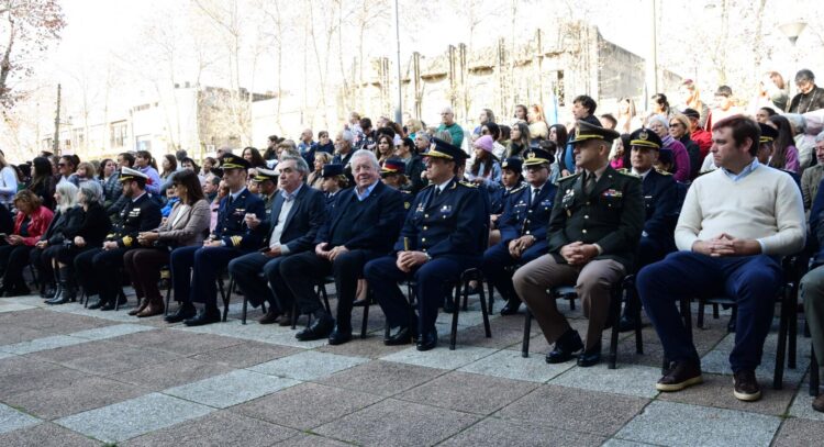 Con la presencia del Intendente de Colonia Carlos Moreira Reisch, el Secretario General Guillermo Rodríguez, autoridades nacionales y departamentales, civiles, policiales y militares, de la educación, representantes consulares y nutridas delegaciones de los diferentes centros de enseñanza de la ciudad, el acto comenzó con la vibrante entonación del Himno Nacional.