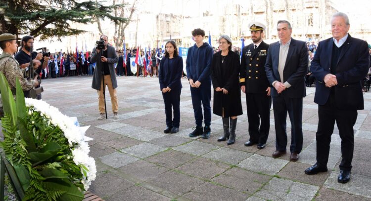 Posteriormente, se procedió a la colocación de una ofrenda floral al pie del monumento que recuerda al prócer, que estuvo a cargo del Intendente Moreira, Secretario General Guillermo Rodríguez, el Capitán de Fragata de Prefectura Pablo Vescia, la Inspectora García y el alumno abanderado del Pabellón Nacional del Instituto de Alta Especialización (IAE) Sebastián Suárez, junto a su compañera Celeste Ambroggio portadora de la pancarta.