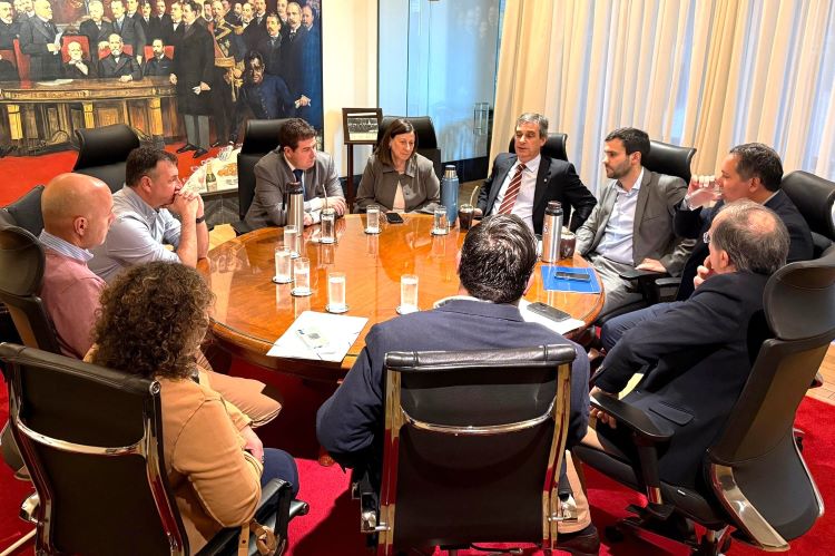 La Mesa del Congreso de Intendentes, integrada por su presidente Nicolás Olivera (Paysandú) y los vicepresidentes Francisco Legnani (Canelones), Richard Sander (Rivera) y Carlos Albisu (Salto), se reunió este jueves con el Directorio del Banco de la República Oriental del Uruguay (BROU), encabezado por su presidente Cr. Álvaro García, para abordar temas de mutuo interés, destacándose especialmente la situación financiera de los funcionarios municipales.