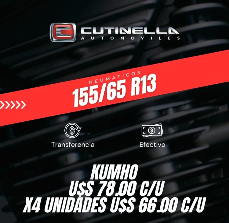 La empresa Cutinella Automóviles lanza para este mes de marzo una imperdible promoción, ofreciendo precios especiales en la compra de un juego completo de neumáticos de las prestigiosas marcas Kumho, Toyo, GT Radial y Ovation, en una amplia variedad de medidas, asegurando opciones para todo tipo de vehículos.