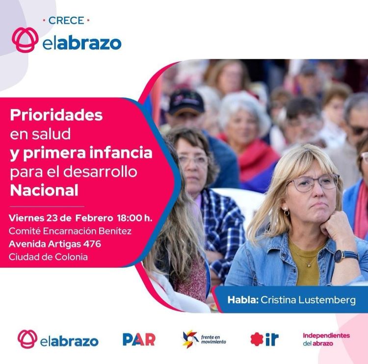 La diputada Cristina Lustemberg, del sector PAR del Frente Amplio, estará en Colonia del Sacramento para hablar en el Comité de Base Encarnación Benítez sobre las prioridades en Salud y la primera infancia para el desarrollo nacional.