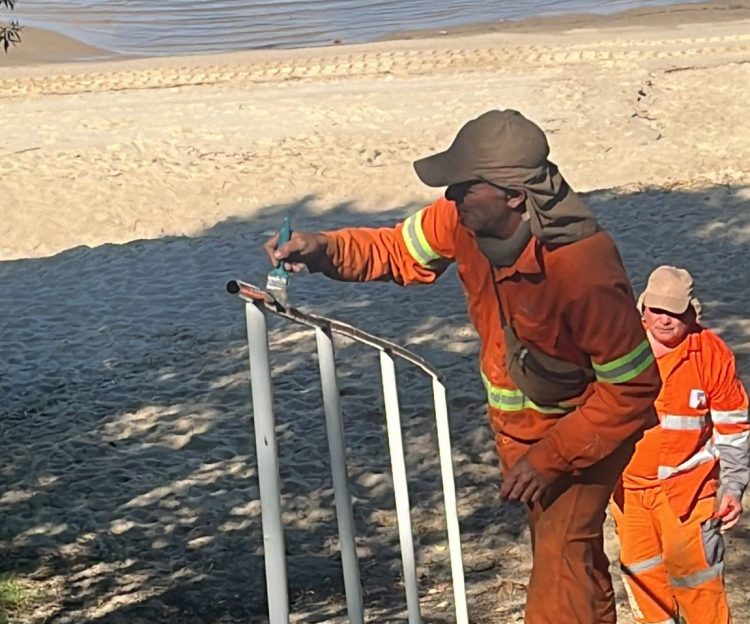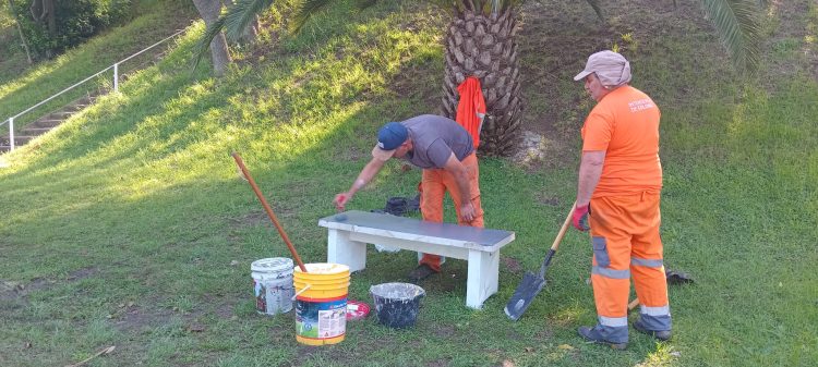 Los trabajos se iniciaron en la Playa El Álamo de la capital del departamento, con limpieza, poda, pintura y colocación de barandas para asegurar la accesibilidad y bancos, según se ve en as fotos que nos hicieron llegar desde la repartición municipal que dirige Hugo Erguiz.