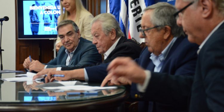 La foto de portada corresponde al momento en que el Dr. Carlos Moreira firmaba en octubre del año pasado el boleto de reserva por el cual la Intendencia de Colonia se comprometió a la compra de una parte del predio de la ex planta de la textil Sudamtex para instalar allí la nueva sede de la Universidad de la República (Udelar).