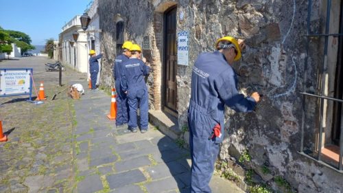 La Escuela Taller de Artes y Oficios Patrimoniales Manuel Lobo, en coordinación con la Dirección de Planeamiento y Patrimonio de la Intendencia, el Museo de Colonia y el Consejo Ejecutivo Honorario, está realizando intervenciones en el Barrio Histórico de nuestra ciudad.