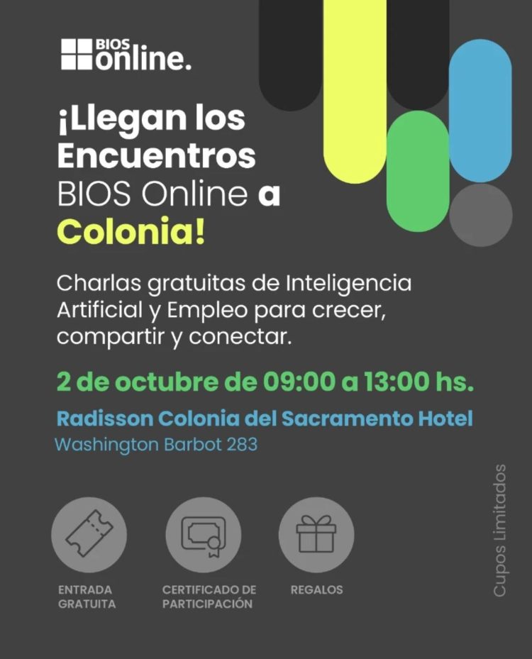 Este jueves 2 de octubre, de 9 a 13 horas, en el Hotel Radisson Colonia, se realizará una charla abierta y gratuita sobre “Inteligencia Artificial y Empleo: crecer, compartir y conectar”, destinada a todo público interesado en comprender cómo las nuevas tecnologías están transformando el mundo laboral.