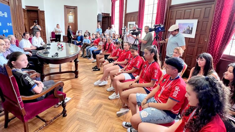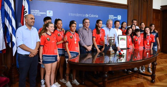 El Intendente Carlos Moreira Reisch recibió en el Palacio de Gobierno Departamental a las chicas del Club Atlético Juventud de Colonia que reciente se consagraran campeonas de la última Copa Nacional de Clubes Femeninos Sub 16 de la Organización de Fútbol del Interior (OFI).
