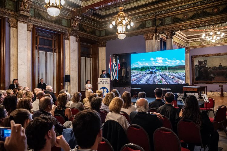 Este jueves, la vicepresidenta Beatriz Argimón entregó el premio Rosario Pou a la Innovación en la Cadena Forestal, un premio de la Academia Nacional de Ingeniería, al proyecto de Riego Automático con Visión Artificial llevado adelante por Montes del Plata junto a Metalúrgica J. Hartwich y la empresa Digital Sense. Se trata de una maquinaria de riego única en la región que, gracias al uso de visión artificial, reduce costos, aumenta la productividad y mejora las condiciones laborales.