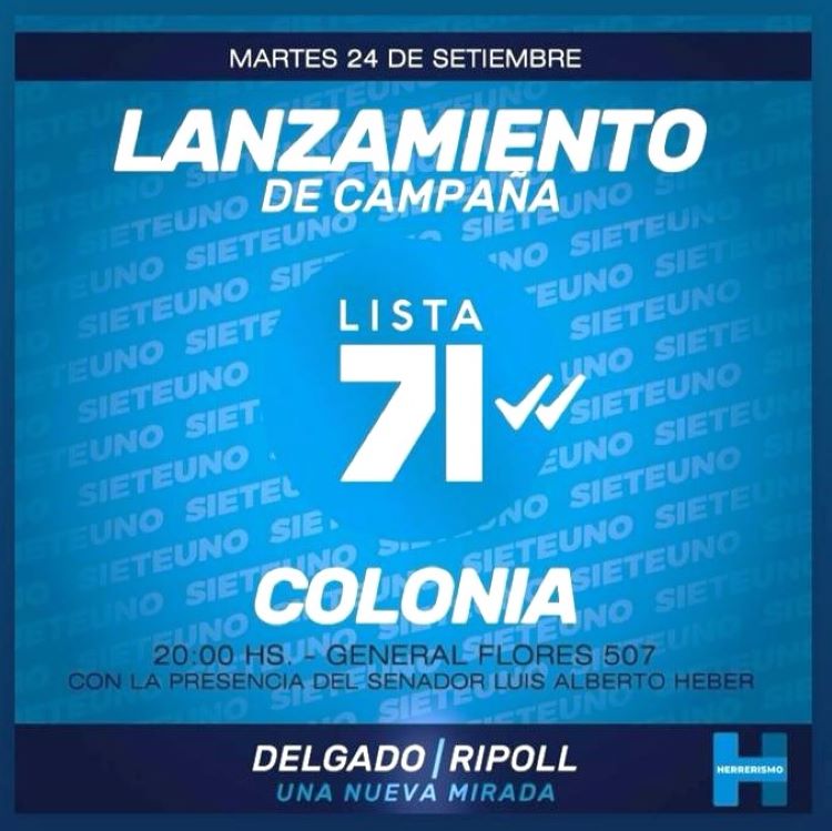 Este martes 24 de setiembre, el senador del Partido Nacional estará en Colonia para lanzar oficialmente la campaña del Herrerismo en nuestro departamento.