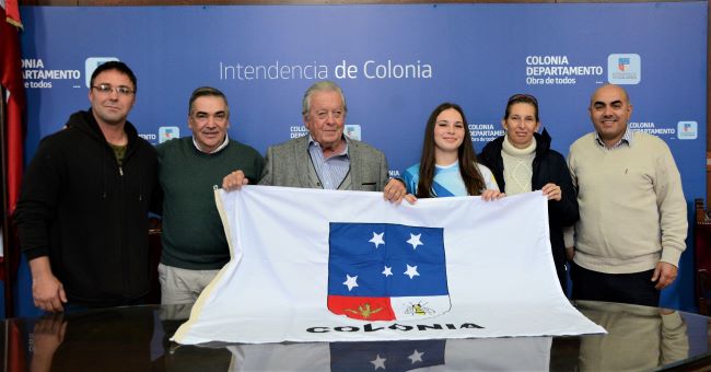 El Intendente de Colonia Dr. Carlos Moreira le hizo entrega a María Eugenia Brun un Pabellón Nacional y el emblema con el escudo del departamento de Colonia para que le acompañen en los Sudamericanos Sub 18 y Sub 21 que se desarrollarán en Asunción, Paraguay.