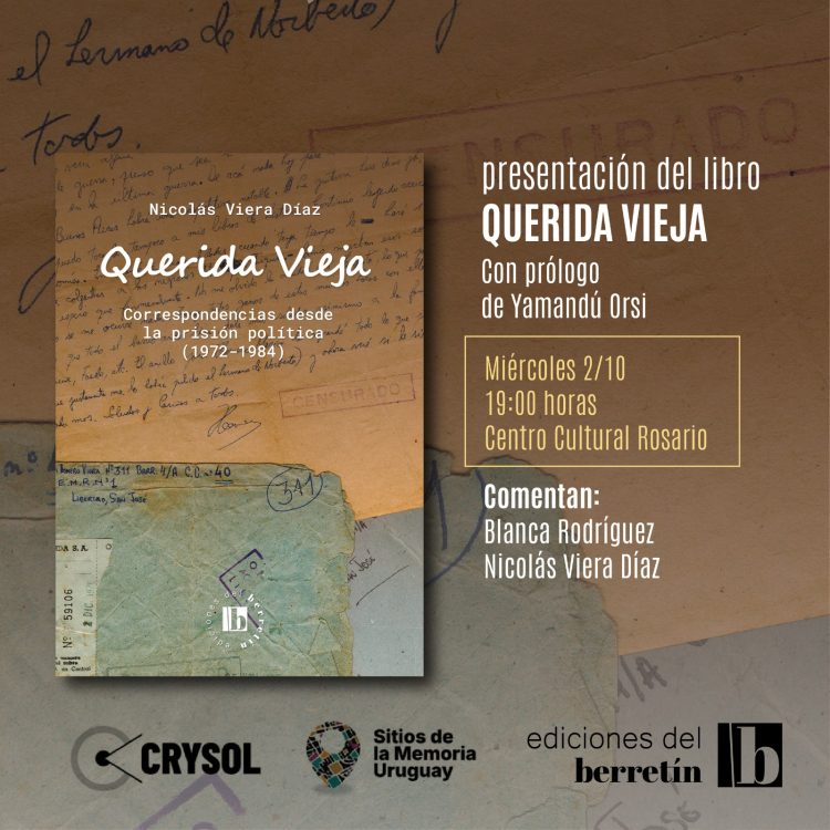 La presentación de “Querida vieja” se realizará este miércoles 2 de octubre, a las 19 horas, en el Centro Cultural Rosario. La actividad cuenta con el apoyo de CRYSOL, Sitios de Memoria Uruguay y Marcha del Silencio Rosario. Además del autor y del protagonista de las cartas, el lanzamiento contará con la presencia de la destacada comunicadora y profesora Blanca Rodríguez.