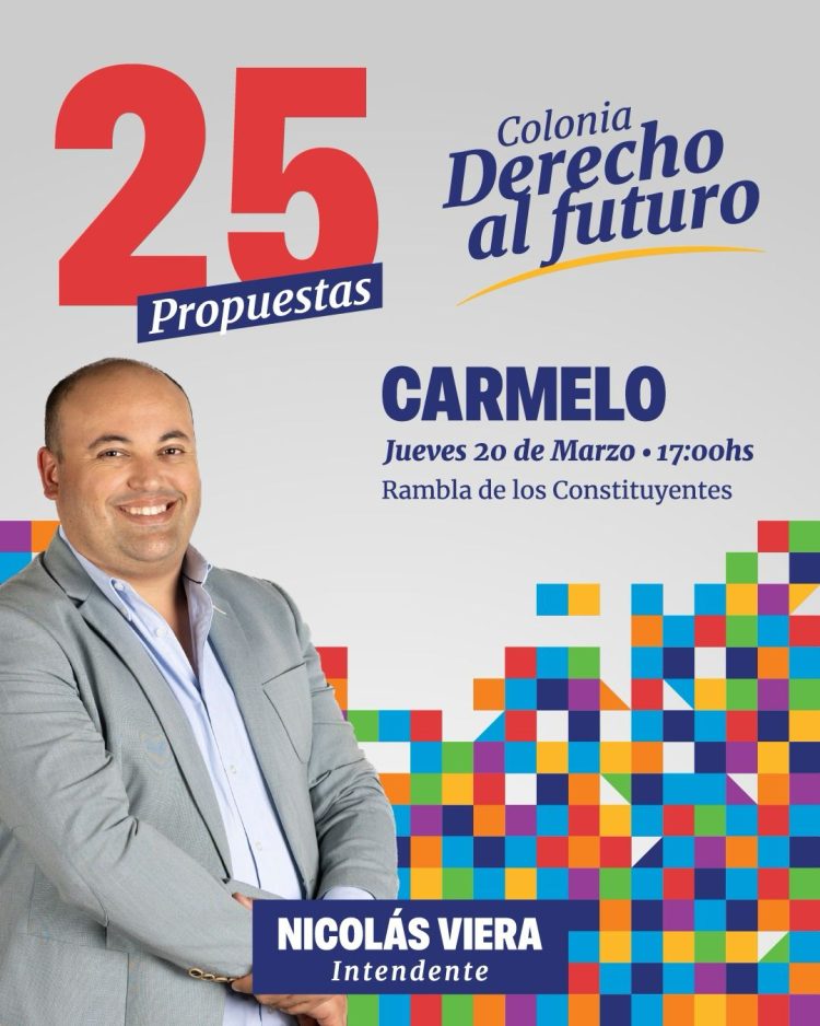 Este jueves 20 de marzo, en la Rambla de los Constituyentes de la ciudad de Carmelo, el candidato a la Intendencia de Colonia por el Frente Amplio presenta otras 5 nuevas propuestas de su plan de gobierno departamental.