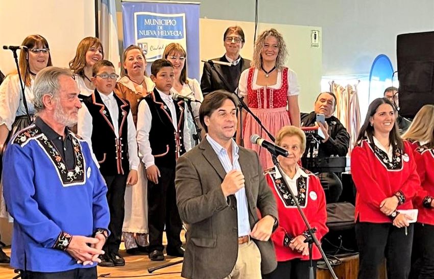 El presidente de la República, Luis Lacalle Pou, participó este domingo 6 de la Fiesta Nacional Suiza que se desarrolló en el Club Nacional de Fútbol de Nueva Helvecia organizada por la Comisión Pro Colonia Suiza Trabajo y Tradición.