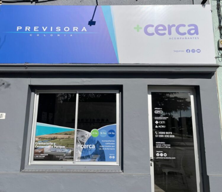 Ubicada en calle José Enrique Rodó 281, cuenta con personal local, quienes brindarán soluciones a las consultas de afiliados y público en general, tanto para los servicios que brinda Previsora Colonia, Colonia Memorial Crematorio, Cementerio Parque y +Cerca Acompañantes.