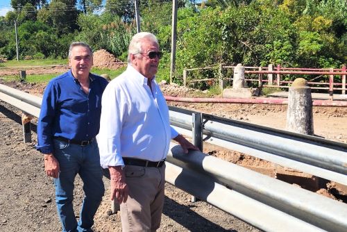 El Intendente de Colonia Carlos Moreira, acompañado del Secretario General Guillermo Rodríguez, recorrieron las obras que se realizan en el puente sobre el Arroyo Curupí, que resultara dañado con las crecidas de la semana pasada y que se encontraba inhabilitado para el tránsito vehicular.