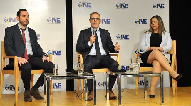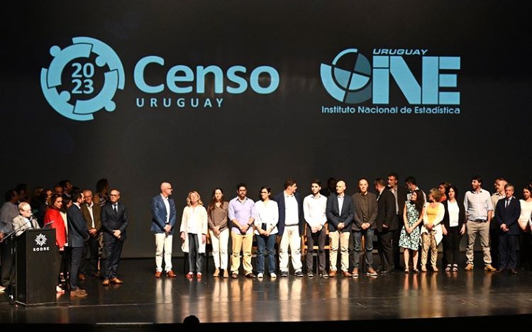 La presentación de los datos incluyó la participación del presidente de la Comisión Nacional de Censo, Isaac Alfie; el director técnico del INE, Diego Aboal, y el director y la subdirectora del Censo 2023, Leonardo Cuello y Lucía Pérez, respectivamente.