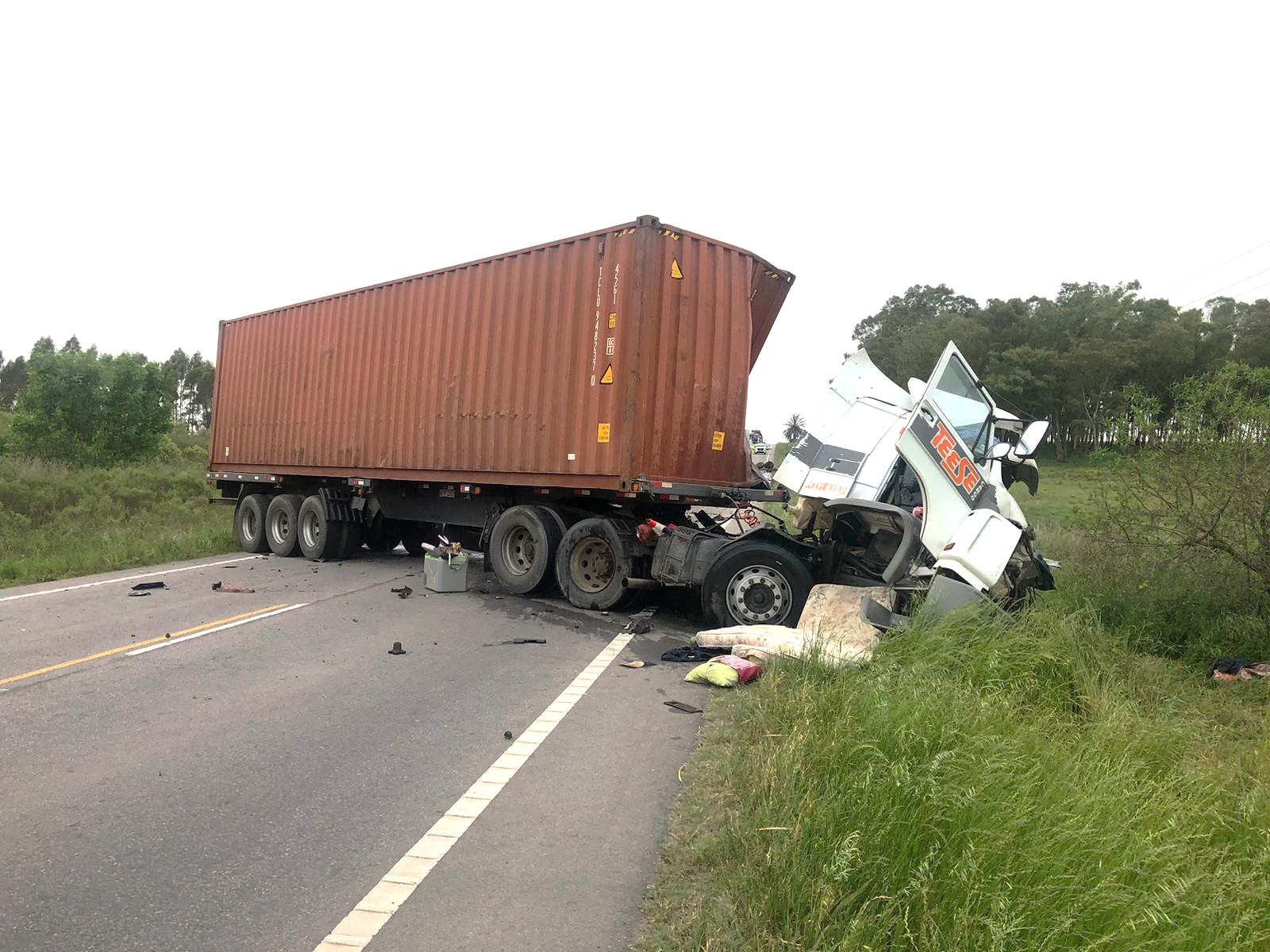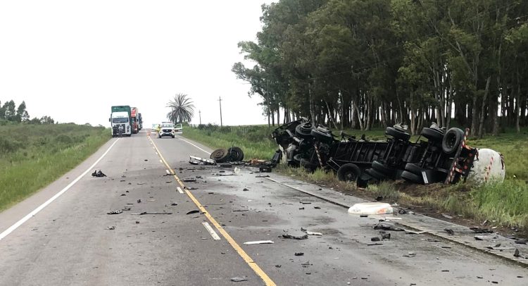 Según el comunicado de la Jefatura de Policía de Colonia, un camión semirremolque porta contenedores circulaba por Ruta 12 al Oeste, y a la altura del kilómetro mencionado, por motivos que todavía no están establecidos, invadió la senda contraria, colisionando frontalmente con otro camión, semirremolque cisterna, que circulaba en sentido contrario.