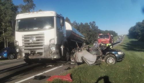 Un terrible saldo arrojó un siniestro de tránsito que ocurrió en la mañana del sábado entre un auto y un camión, a la altura del kilómetro 134,500 de la Ruta 12, entre las localidades de Jackson e Ismael Cortinas, en nuestro departamento.