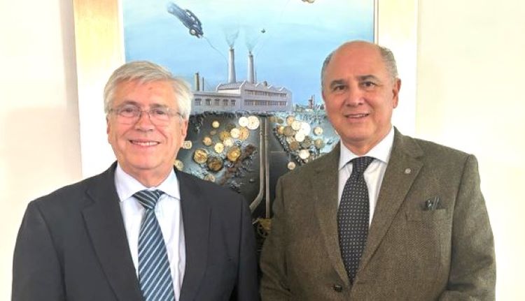Walter Verri y Andrea Maddalena junto a Tabaré Viera en la Cámara de Industrias